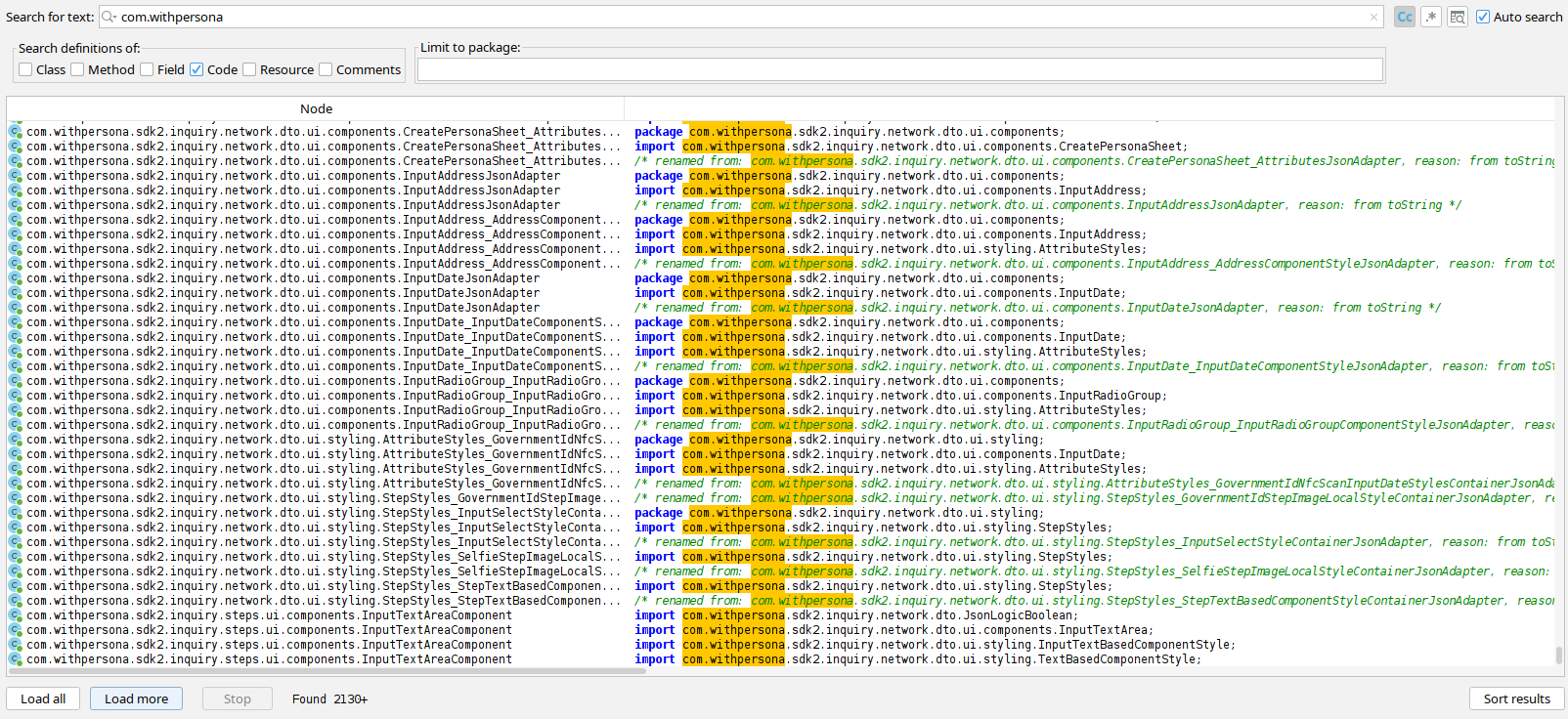 In the APK we found thousands of hits pointing towards Persona, a virtual identity verification company. Searching for the string com.withpersona, Persona's unique package identifier, a term that cannot be confused with anything else, returned thousands of results embedded across Discord's core systems. We are not talking about a passing mention. We are talking about Persona's code woven into Discord's app at a foundational level.